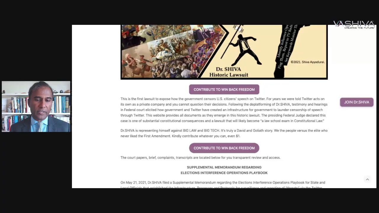 Dr.SHIVA LIVE: Elites in US & India Launder Censorship from Boston to Bombay thru #BigTechSupport the Historic Lawsuit that is exposing how Government - The State - violates Freedom Using Twitter and Big Tech.Donate $1 (~70 Rs) at: WinBackFreedom.Com - Truth Freedom Health - 985DrShiva